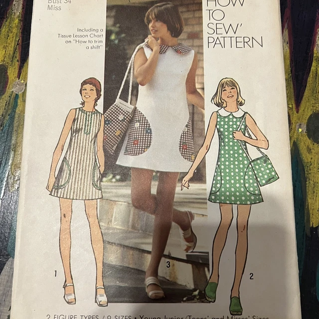Vintage 60s Sewing Pattern Simplicity 6968 Darling Back Button Bow Dress 34uncut 4 75 Picclick Uk